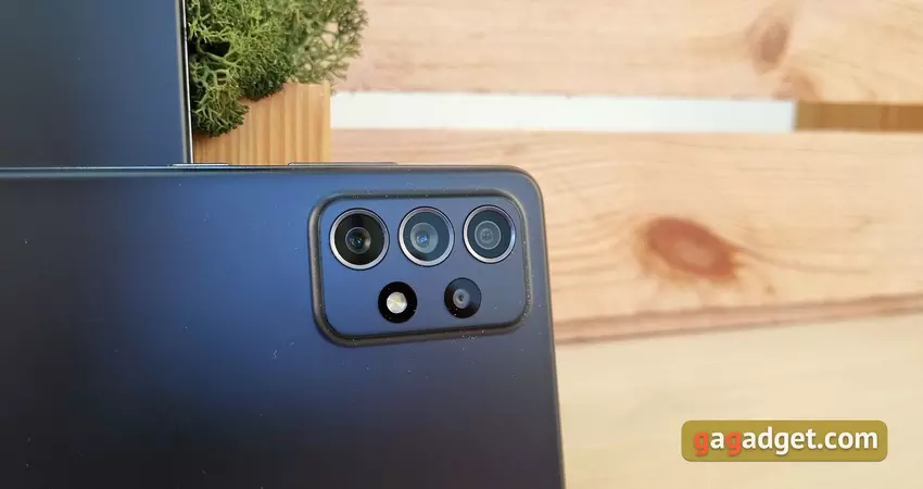 - Tylny aparat każdego aparatu zawiera cztery moduły: główny, szerokokątny, teleobiektyw i makro z Galaxy 72. Zamiast „teleobiektywu” Galaxy A52 ma czujnik głębi.