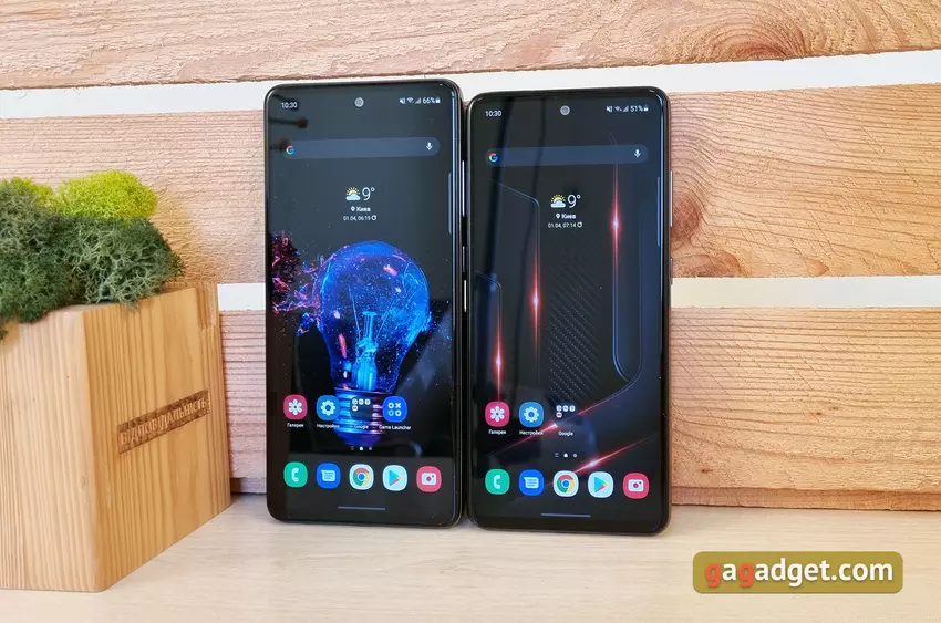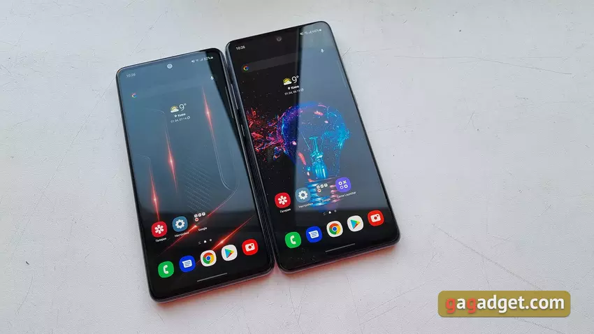 | Wyświetlacz | Super AMOLED, 6,7 cala, 2400 x 1080 (proporcje 20: 9), 394 ppi, 90 Hz, Gorilla Glass 5, 800 nitów (wartość maksymalna) | Super AMOLED, 6,5 cala, 2400 x 1080 (proporcje 20: 9), 407 ppi, 90 Hz, Gorilla Glass 5, 800 nitów (wartość maksymalna) |