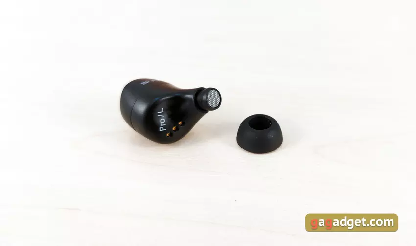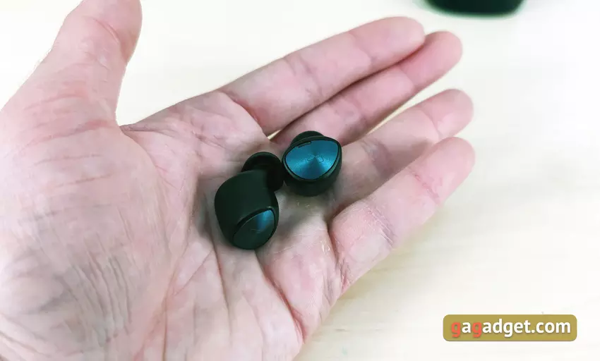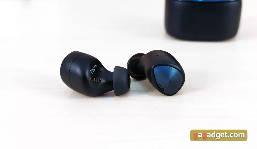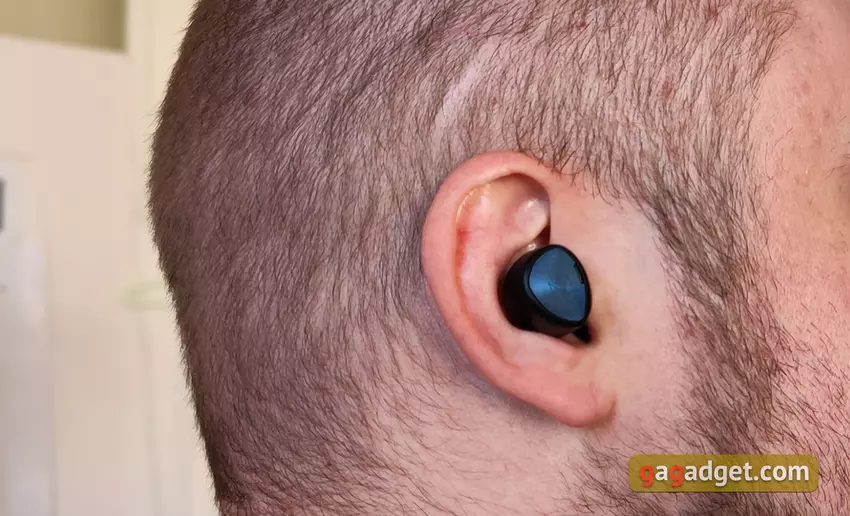 Słuchawki są lekkie i mają całkiem niezły kształt. Mają doskonałe, głębokie dopasowanie do małżowiny usznej, są dobrze zamocowane i nie wylatują z uszu, nawet podczas biegania. Ale najpierw musiałem trochę poeksperymentować, aby znaleźć dla mnie optymalną pozycję z lepszą izolacją akustyczną. Krótko mówiąc, przy doborze odpowiednich końcówek i dopasowaniu, pasywna izolacja akustyczna jest doskonała. Ale dla tych, którzy boją się odizolować się od świata zewnętrznego, jest tryb przezroczystości Hear Through. Użytkownik otrzymuje dźwięk z mikrofonów, aby słyszeć, co się dzieje wokół. Jedynym ważnym punktem, który należy wiedzieć o użyteczności, jest to, że wkładki douszne wystają nieco poza uszy. Jest szansa, że zimą w czapce nie będzie to zbyt wygodne.