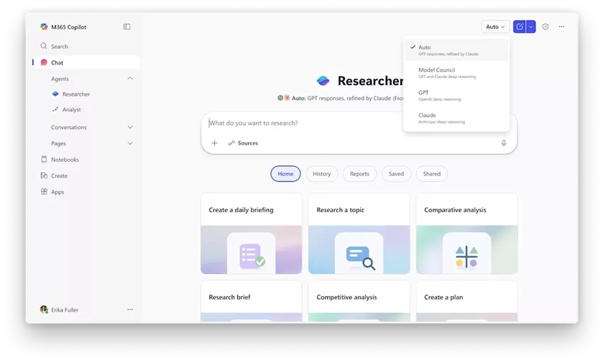 Oprócz tego Microsoft uruchomił alternatywną funkcję Model Council. Pozwala ona uzyskać odpowiedzi równocześnie od dwóch modeli OpenAI i Anthropic, z równoległym wyświetlaniem ich wniosków i rozbieżności w formie osobnego raportu.