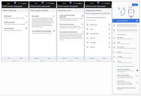Funkcje aplikacji Android Accessibility Suite 12.0.0 mogą być włączone w ustawieniach aparatu. Obecnie dostępnych jest sześć wyrazów twarzy: otwarte usta, uśmiech, uniesione brwi, spojrzenie w lewo, spojrzenie w prawo, spojrzenie w górę.