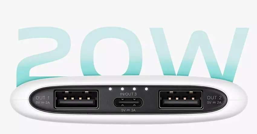 Nowy produkt nosi nazwę Vivo 20W Fast Charging Power Bank. Urządzenie ma plastikową obudowę i pojemność 10000 mAh. Wśród portów w powerbanku znajdują się dwa porty USB-A dla wyjścia i jeden port USB-C, który działa w obie strony. Port USB-A obsługuje moc wyjściową 18 W. USB-C, z drugiej strony, ma moc 20 W. Jeśli korzystasz z trzech portów jednocześnie, moc jest zredukowana do 15W.
