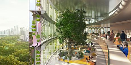 Większa część 51-piętrowego budynku będzie przeznaczona na biura, ale znajdzie się tam również food court i supermarket oraz taras na dachu. Ponadto, duża część szklanej fasady zostanie wykorzystana do uprawy roślin hydroponicznych.