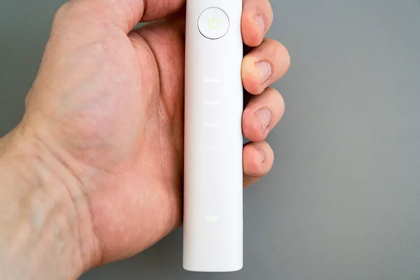 Pędzel ma dość dużą obudowę. Powłoka ceramiczna jest biała i bardzo przyjemna w dotyku, dzięki czemu nie pozostają na niej plamy. Jedynym elementem sterującym jest jeden przycisk, który służy zarówno do włączania/wyłączania, jak i przełączania trybów.