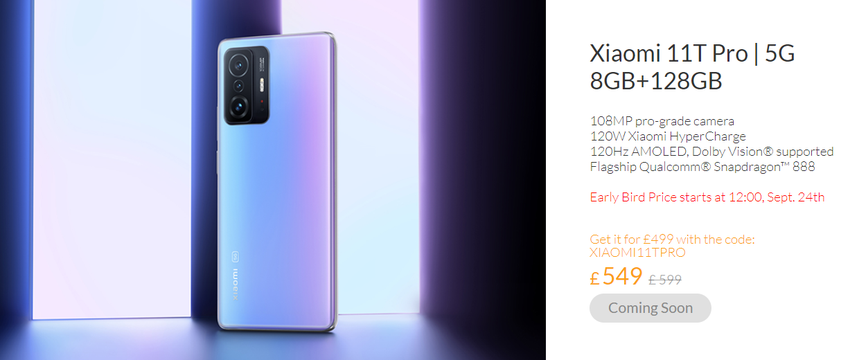 Możesz również uzyskać 50 funtów zniżki w dniu 24 września z kodem promocyjnym XIAOMI11TPRO. Dotyczy to tylko wersji z 8GB pamięci RAM i 128GB pamięci wewnętrznej. Oficjalna sugerowana cena bez rabatu to 599 funtów.