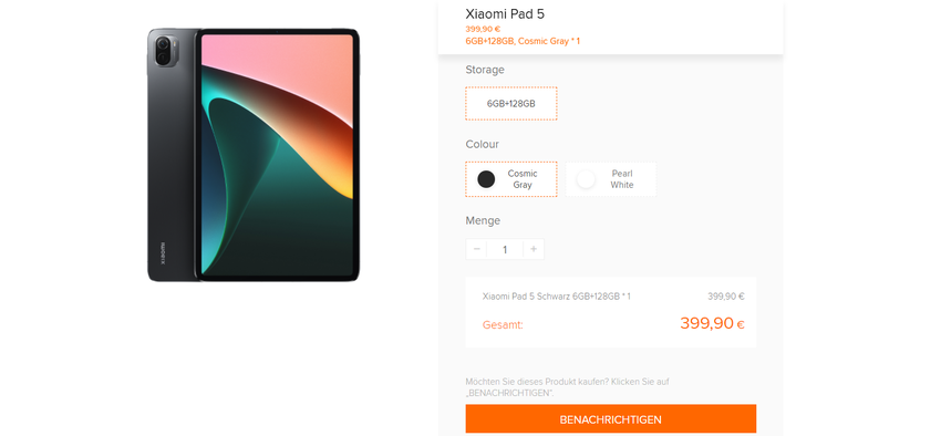 400 euro muszą teraz wyłuskać użytkownicy, którzy chcą kupić Xiaomi Pad 5 w modyfikacji z 6 GB RAM i 128 GB pamięci stałej. Ale dzień temu, cena tabletu została obniżona do 300 euro, aby uczcić premierę.