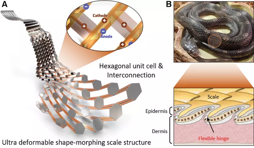 Łuskowata natura skóry węża będzie stanowić podstawę dla elastycznych baterii