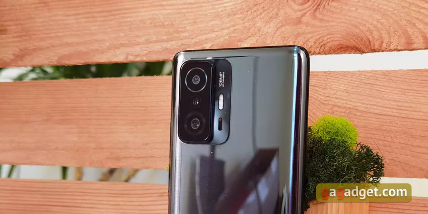 Tylna kamera Xiaomi 11T Pro składa się z trzech modułów. Główny z nich ma 108 megapikseli i przysłonę f/1.8. Rozmiar sensora to 1/1.52", rozmiar piksela to 0.7µm, jest autofokus fazowy PDAF, nie ma stabilizacji optycznej. Tryb standardowy łączy 9 pikseli w jeden 2,1µm, a wynikowa rozdzielczość wynosi 12 megapikseli. Ale jest też tryb pełnej rozdzielczości 108MP. Następnie jest ultra szerokokątny na 8 MP, f/2.2, kąt widzenia 120˚, bez autofokusa. Trzeci moduł to teleobiektyw, który służy również do makrofotografii. Ma rozdzielczość 5 MP, przysłona - f/2.4, jest autofocus. Wideo smartfon może zapisywać w maksymalnej rozdzielczości 8K 30 klatek na sekundę, co nie jest jeszcze szczególnie interesujące dla masowego użytkownika. Frontalny aparat - 16 MP z przysłoną f/2.5.