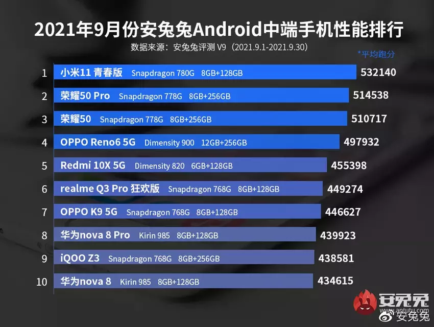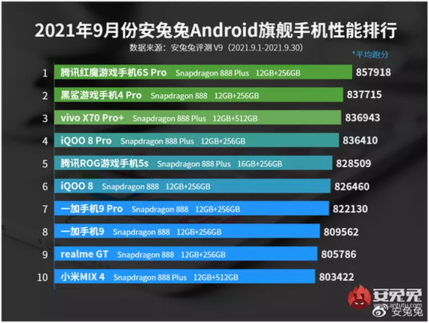 Zmiana lidera i solidny Snapdragon 888: wrześniowy ranking najmocniejszych smartfonów z Androidem przygotowany przez AnTuTu