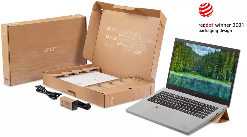 Firma Acer zaprezentowała wiosną 2021 roku laptop Aspire Vero, który jest wykonany w 30 procentach z plastiku pochodzącego z recyklingu i nie ma żadnych kolorów. Model ten dopiero teraz pojawia się na rynku.