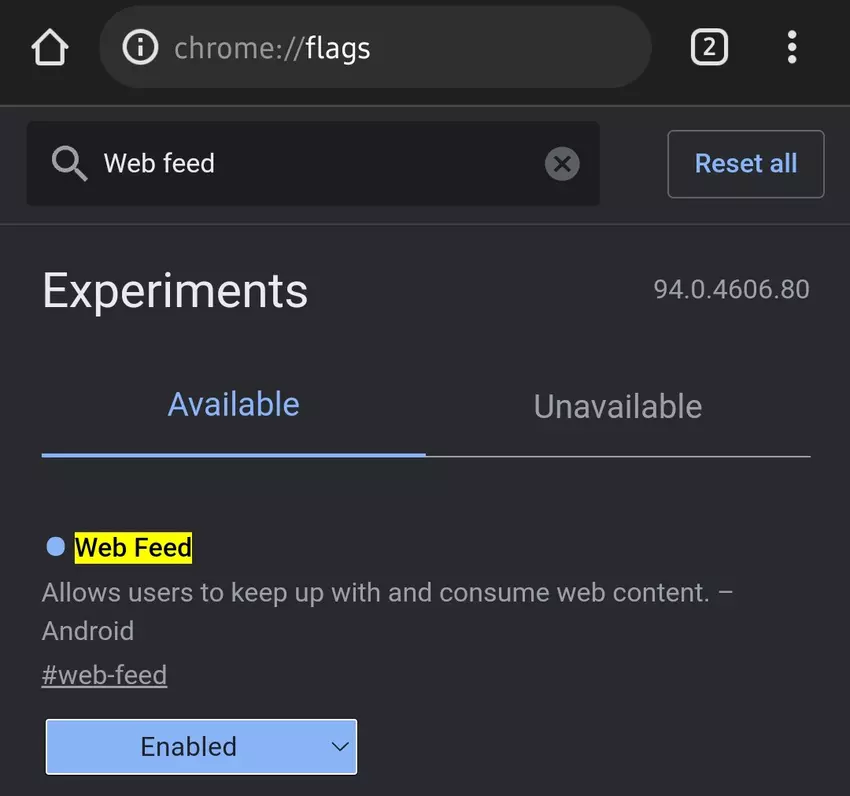 Follow jest obecnie dostępny w przeglądarce Chrome 94 dla systemu Android. Aby ją aktywować, przejdź na stronę flag przeglądarki chrome://flags, ręcznie aktywuj tę eksperymentalną opcję i uruchom ponownie Chrome.