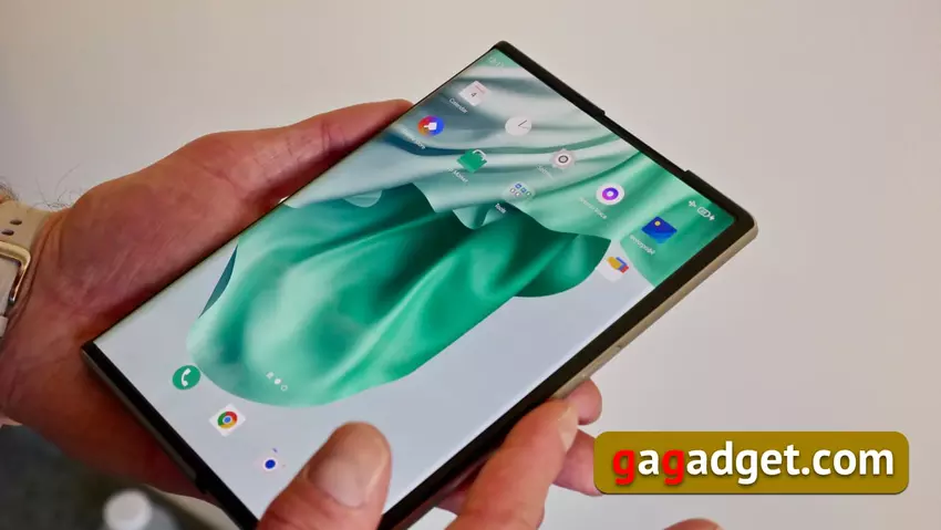 Różnorodność czynników formalnych oferowanych przez wyświetlacze elastyczne nie ogranicza się do tych dwóch, które już okazały się opłacalne. Huawei Mate X oferował swój własny wariant, w którym wyświetlacz składa się na zewnątrz, a nie do wewnątrz. Co jednak sprawiło, że taki model użytkowania stał się zupełnie niepraktyczny (z tego samego powodu, dla którego Mi Mix Alpha nigdy nie wyszedł z fazy prototypu). Trzymałem oba te smartfony w rękach i korzystanie z nich jest naprawdę przerażające - sama myśl o tym, co stałoby się z wyświetlaczem, gdyby został upuszczony, jest przerażająca. Jeśli masz wyświetlacz z obu stron odsłonięty (w przeciwnym razie jaki jest sens), jest gwarantowane, że zostanie on uszkodzony podczas upadku. A koszt wymiany takiego wyświetlacza będzie jak statek kosmiczny. Inny czynnik formy został zaoferowany przez OPPO, a my będziemy mówić o tym teraz.