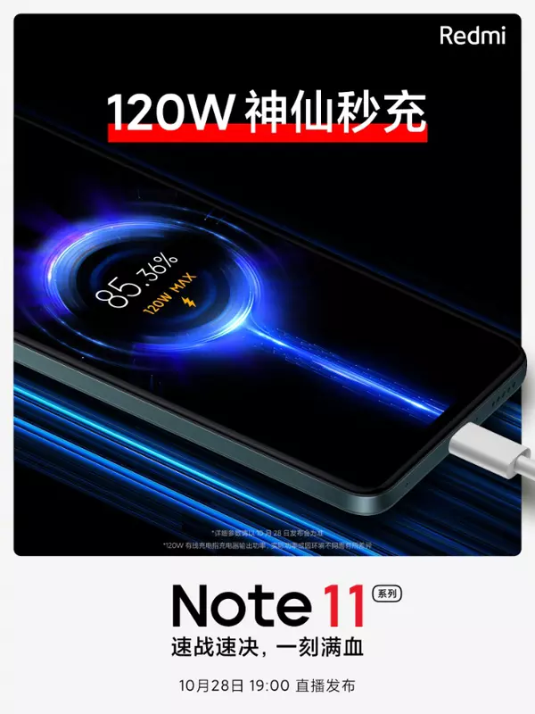 Chiński producent opublikował plakat, według którego urządzenie będzie mogło pochwalić się wsparciem dla ultraszybkiego ładowania o mocy 120W. Biorąc pod uwagę, że smartfonowi przypisuje się akumulator o pojemności 5000 mAh, nowość będzie w stanie naładować się do 100% w około 15-20 minut.