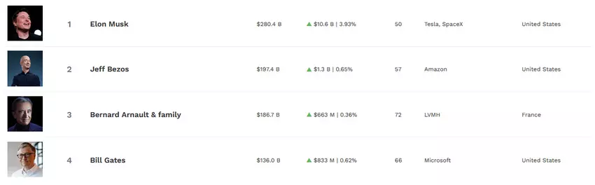 Według stanu na 26 października, majątek Muska osiągnął rekordową wartość 271,3 miliardów dolarów, co czyni go na pierwszym miejscu Forbes. Liczba ta wzrosła do 280,4 miliardów dolarów. Nawiasem mówiąc, po raz pierwszy szef Tesli zbliżył się tak bardzo do liczby 300 miliardów dolarów.