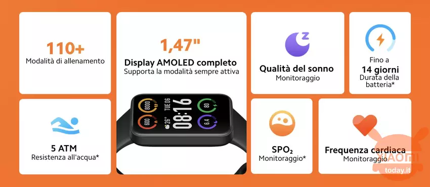 Jeśli chodzi o zdrowie, bransoletka mierzy tętno przez całą dobę, wykrywa poziom tlenu we krwi , monitoruje jakość snu i poziom stresu. Dodatkowo, w standardzie , gadżet dubluje połączenia przychodzące, wiadomości i powiadomienia ze smartfona .