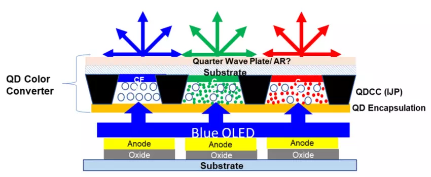 Ponadto obie firmy stworzyły algorytmy, które mają zapobiegać wypaleniu, ale nie są jeszcze dostępne żadne szczegóły. Wiadomo jednak, że Samsung Display rozpoczął projekt QD-QLED. Będzie on produkował wyświetlacze, które nie wykorzystują elementów RGB, jak konwencjonalne rozwiązania OLED, a jedynie niebieskie diody LED do regulacji jasności. I tak, QD-OLED to quantum dot OLED.