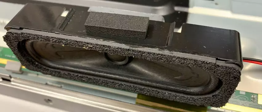 Tajemnica dźwięku tkwi w rozmieszczeniu głośników w tym telewizorze. Są one zamontowane w osobnej obudowie i jest w niej miejsce na piszczałki o wysokiej częstotliwości. Otwory w środku działają jak fazoinwerter.