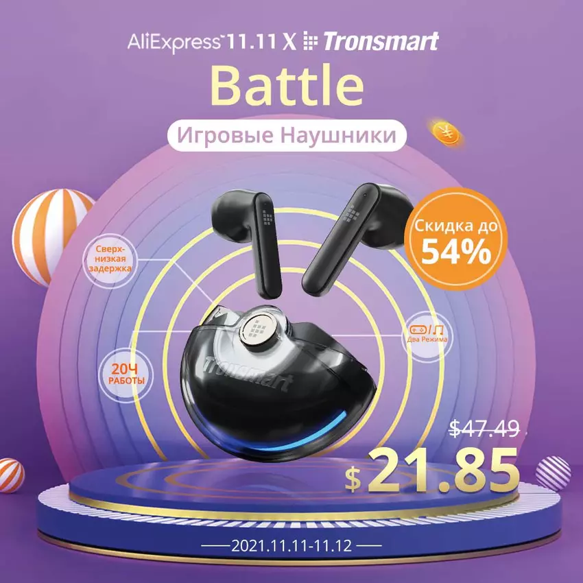 W tym roku firma Tronsmart wprowadziła na rynek swoje pierwsze gamingowe bezprzewodowe słuchawki Battle. Wyposażone w tryb gier o ultra niskich opóźnieniach, pozwalają na granie w gry przy stabilnej transmisji z niemal zerowymi opóźnieniami. Optymalna dla strzelanek takich jak PUBG, CODM i FORTNITE. W okresie wyprzedaży można uzyskać 54% zniżki i kupić słuchawki Tronsmart Battle za 21,85 dolarów.