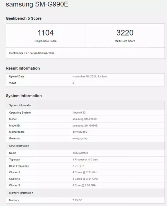 Samsung Galaxy S21 FE napędzany przez Exynosa 2100 i Androida 12 przetestowany w Geekbench 5