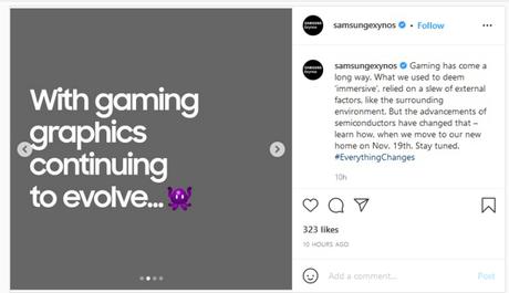 czekajZapowiedź nowego Exynosa 2200 z procesorem graficznym AMD została zasugerowana przez południowokoreańskiego giganta postem na Instagramie: "Jako że grafika w grach wciąż ewoluuje, pokażemy Ci, jak będzie wyglądać rozrywka w przyszłości. Wszystko zmieni się 19 listopada 2021 roku".