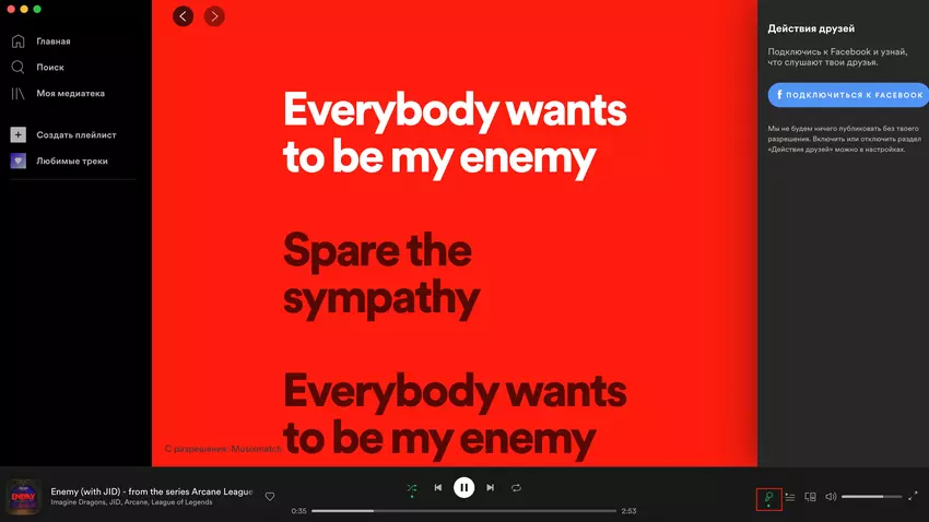 Jeśli chodzi o program na PC, aby zobaczyć słowa, musisz nacisnąć przycisk mikrofonu podczas odtwarzania utworu. Oczywiście wszystkie teksty są zsynchronizowane z piosenkami. Przy okazji, Spotify wprowadza funkcję Word View z usługą Musixmatch...