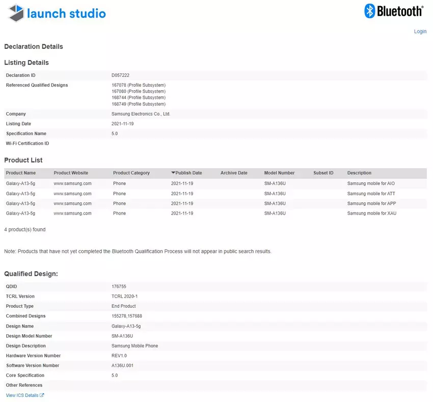 Nowość dostrzeżono w bazie danych Bluetooth SIG. Dlatego zapowiedź smartfona nastąpi w niedalekiej przyszłości. W dokumentach wymieniono urządzenie o numerach modeli SM-A136U, SM-A136U1 i SM-A136W.