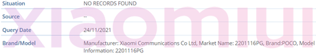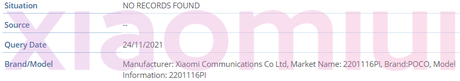 Smartfon POCO X4 NFC został zauważony w bazie IMEI i ma numer modelu 2201116PG. W tym samym miejscu zauważono wersję bez wsparcia Near Field Communication. Ma numer 2201116PI.