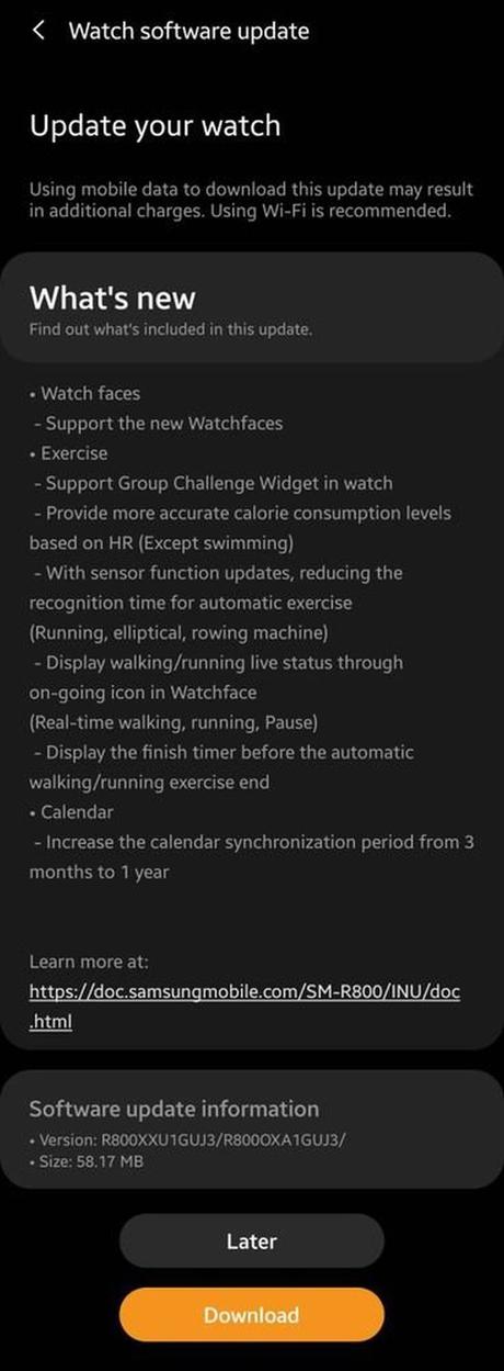 Zegarek otrzymał 10 nowych tarcz, które wcześniej były dostępne wyłącznie dla Galaxy Watch 4 i Galaxy Watch 4 Classic. Użytkownicy mogą je dostosowywać. Na przykład zmień tło, kolor tekstu i animowane elementy. Oprócz tarcz zegarek otrzymał również obsługę widżetów Group Challenge i ulepszony odczyt kalorii. Również w nowym systemie zoptymalizowano czujnik, który odpowiada za automatyczne wykrywanie treningów. Ten proces będzie teraz szybszy.