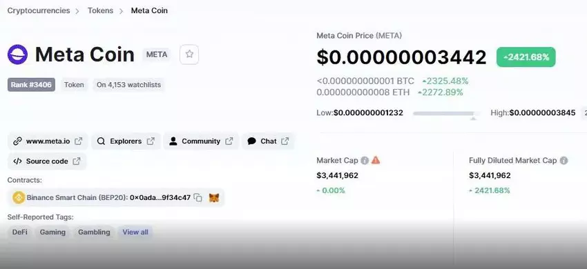 Oszuści postanowili wykorzystać zmianę nazwy Facebooka na Meta, która zaczęła masowo tworzyć kryptowaluty ze skrótem META.