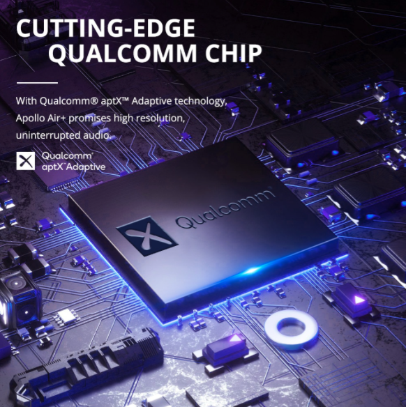 Apollo Air + jest odporny na wodę i kurz IP54, a także posiada aktywną redukcję szumów i tryb przezroczystości. Ponadto wkładki douszne mogą pochwalić się czujnikami wykrywania uszu i technologią CVC 8.0, która tłumi obcy odgłosy podczas rozmów.