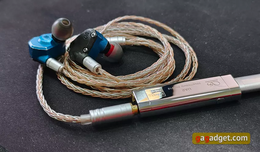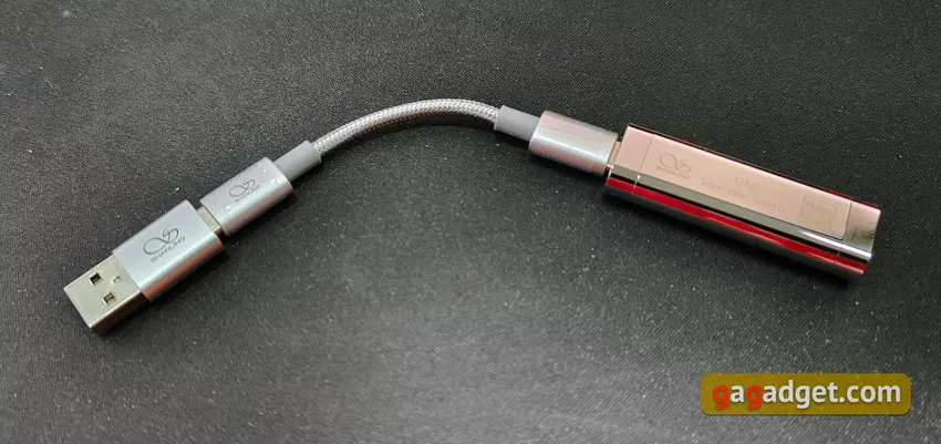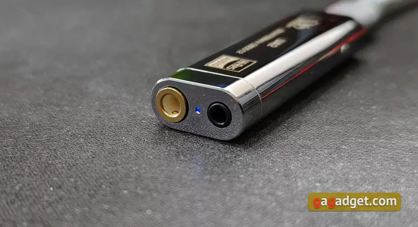 Na tym kończą się funkcje użytkowania. Pozostaje dodać, że DAC zasilany jest ze źródła. A zatem smartfon szybciej usiądzie, jeśli słuchasz muzyki przez długi czas. Ale zużycie zależy w dużej mierze od głośności i poziomu wzmocnienia, więc trudno podać dokładne liczby. Podczas pracy Shanling UA2 nagrzewa się, ale ogrzewanie jest minimalne. DAC lekko się nagrzewa, nic więcej.