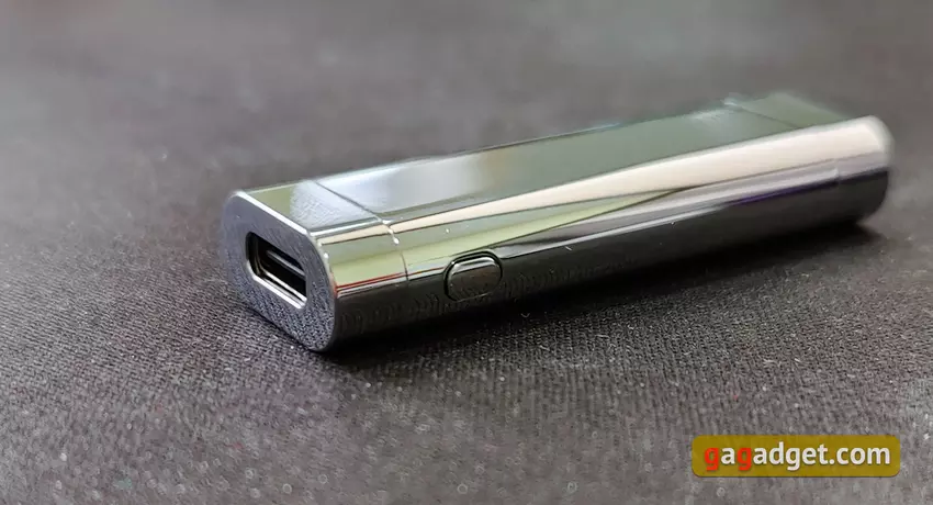 Wszystkie takie przenośne przetworniki/wzmacniacze są popularnie nazywane „gwizdkami”. I nie na próżno jest coś wspólnego zarówno pod względem formy, jak i wielkości. Shanling UA2 ma bardzo kompaktowy rozmiar, który jest nieco mniejszy niż standardowa zapalniczka. I wykonany w całości z metalu. Istnieje bardziej praktyczna czarna opcja. Dotarła do nas wersja Chrome. Wygląda fajnie i bogato, ale natychmiast pozostawia odciski. Podejrzewam też, że rysy.