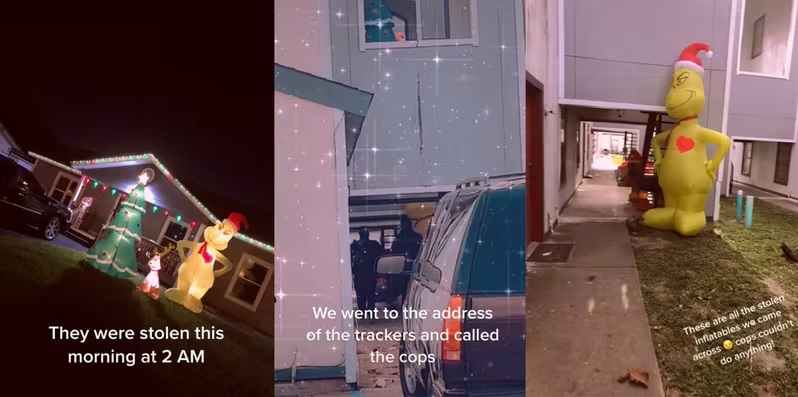Kamery CCTV sfilmowały, jak niezidentyfikowane osoby w nocy porywały duże nadmuchiwane postacie stojące na dziedzińcu domu. Nie wiedzieli, że właściciel dołączył AirTags do biżuterii.