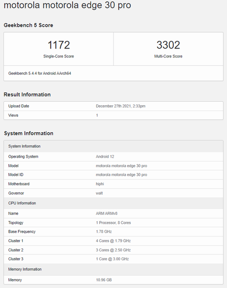 Kolejna nowość będzie się nazywać Moto Edge X30 Pro lub Motorola Edge X30 Pro. Została zauważona w bazie danych oprogramowania Geekbench 5 pod drugim imieniem. Test wydajności zdała wersja z 12 GB pamięci RAM.