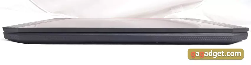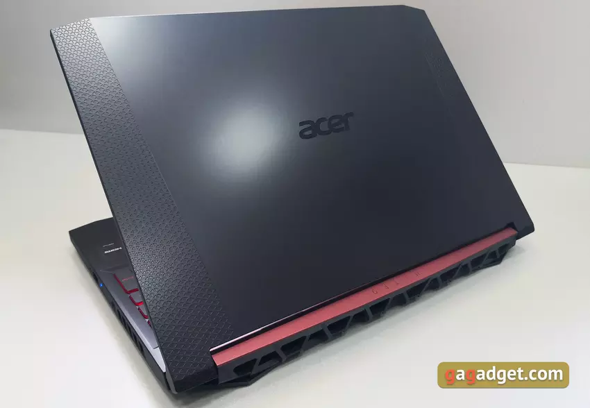 Wizualnie w nowym Nitro 5 są znane cechy swoich poprzedników w kolorze czarnym i czerwonym oraz zastosowaniem plastiku w projekcie. Ale jeśli przyjrzysz się uważnie, to rozróżnisz przyzwoite zmiany. Pierwszą rzeczą, która rzuca się w oczy, jest znacznie zmniejszona ramka na obwodzie wyświetlacza. Pozwoliło to zmniejszyć ogólny rozmiar laptopa. Dla porównania wymiary nowego wynoszą 363,4 x 255 x 25,9 mm, stary - 390 x 266 x 26,75 mm. Górna pokrywa jest teraz w większości gładka, z wytłoczonymi wstawkami po bokach: