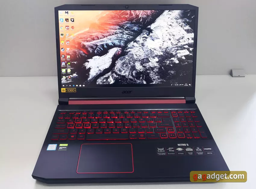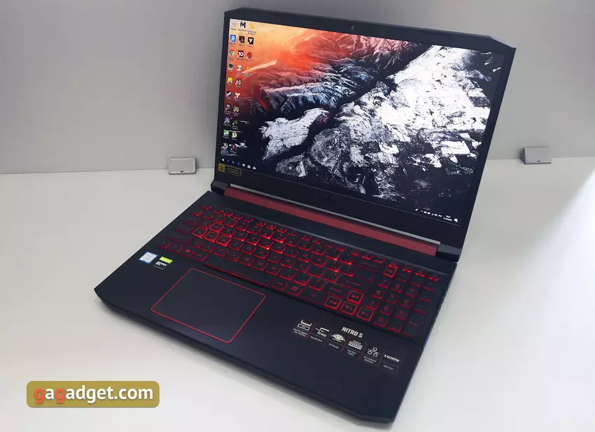 Laptop nie wykazuje się najwyższą, ale bardzo wysoką wydajnością, mocą wystarczającą do renderowania treści wideo i do nowoczesnych gier. W testach graficznych znacznie przewyższa poprzednie Nitro 5 z GTX 1050 Ti, w „procesorowych” jest nieco opóźniony. Ale należy się tego spodziewać, ponieważ w naszym teście mieliśmy konfigurację z sześciordzeniowym procesorem Intel Core i7-8750H: