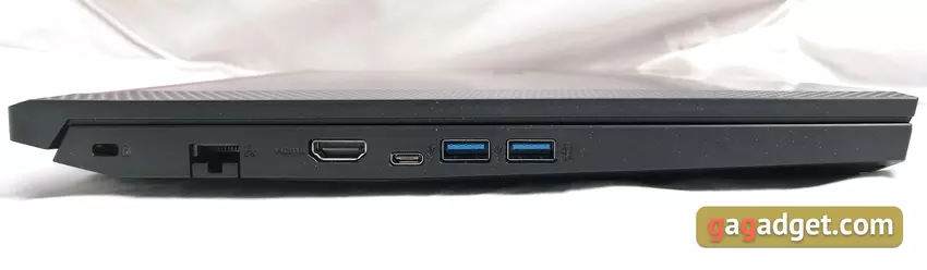 Lokalizacja i zestaw portów nieco się zmieniły. Po lewej stronie znajduje się złącze Kensington Lock, przesuwne RJ-45, HDMI 2.0, USB 3.1 Type-C (niestety bez możliwości podłączenia wyświetlacza) i dwa USB 3.0. W poprzedniej wersji po tej stronie znajdował się także czytnik kart, ale po jednej stronie był tylko jeden pełnowymiarowy USB: