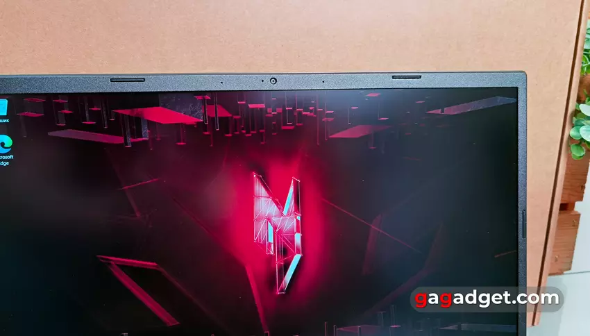 Na obwodzie ekranu znajdują się typowe gumowe wstawki, a ramka jest stosunkowo cienka. Szczególnie po bokach. Nad ekranem znajduje się standardowy zestaw dwóch mikrofonów i kamera internetowa ze wskaźnikiem. Rozdzielczość kamery to 1280x720, 30 FPS.