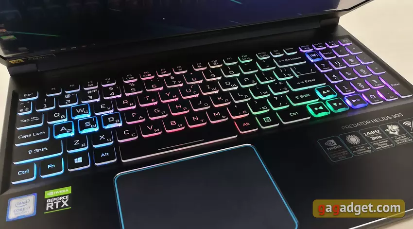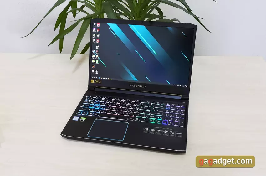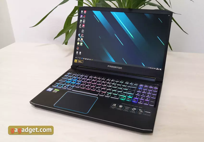 U nas na przeglądzie była bardzo zrównoważona konfiguracja Acer Predator Helios 300. Jest on wyposażony w sześciordzeniowy procesor Intel Core i7-9750H dziewiątej generacji. Częstotliwość taktowania wynosi 2,6 GHz, a Turbo Boost do 4,5 GHz. Wspieranie wątków 12 obsługiwanych. Istnieje wbudowana karta graficzna Intel UHD 630. W naszej konfiguracji 16 GB pamięci DDR4 2666 RAM, 2 paski 8 GB są zainstalowane, działa w trybie dwukanałowym. Maksymalna pojemność wynosi 32 GB. Laptop jest wyposażony w Wi-Fi 802.11ac, Bluetooth 5.0 i port Gigabit Ethernet.