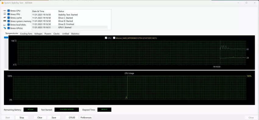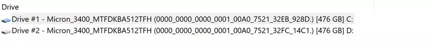 Acer Swift Edge posiada dwa gniazda na dyski SSD M.2. W naszym przypadku zainstalowane są dwie płyty Micron 3400 z interfejsem PCI-E 4.0 4x. Deklarowana prędkość odczytu wynosi do 6600 MB/s, a zapisu do 3600 MB/s.