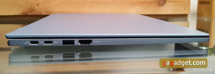 Po lewej stronie znajdują się dwa Type-C nowej , czwartej wersji ze wsparciem dla Power Delivery i DisplayPort, kolejne USB3.2 Gen 1 Type-A oraz HDMI 2.1. Do tego zestawu odpowiedni byłby tylko czytnik kart.