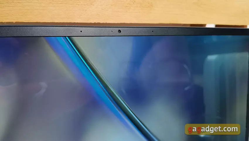 Twierdzi się, że wyświetlacz zajmuje 92% powierzchni górnej pokrywy. Ramki są naprawdę bardzo cienkie. Nad wyświetlaczem znajduje się standardowy zestaw: kamera internetowa o rozdzielczości FullHD, wskaźnik jej pracy oraz para mikrofonów.
