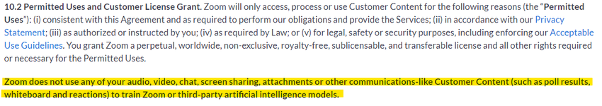 11 sierpnia Zoom usunął ze swoich warunków świadczenia usług klauzulę, która mówiła o możliwym wykorzystaniu danych klientów do szkolenia algorytmów sztucznej inteligencji.