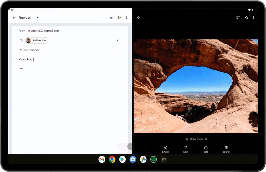 Pasek zadań na tablecie z Androidem 13 i trybem podzielonego ekranu
