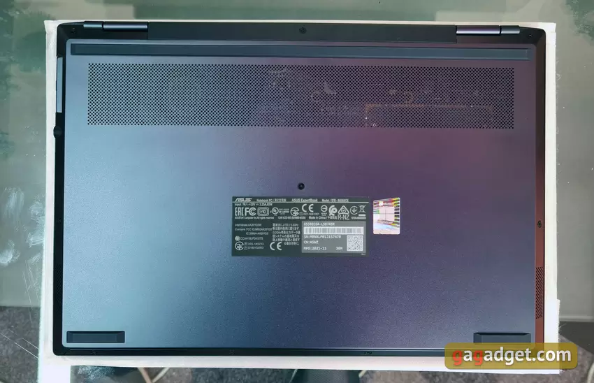 ASUS ExpertBook B5 wyposażony jest w czterokomorową baterię o mocy 66W*h, ASUS obiecuje do 14 godzin pracy na baterii. Pełne ładowanie z dołączonego do zestawu zasilacza 65W trwa około 2 godzin i 30 minut. Zgodnie z oczekiwaniami, laptop okazał się bardzo wytrzymały. Może pracować bez ładowania dłużej niż dzień roboczy, więc można w ogóle nie zabierać zasilacza ze sobą do biura. Bardziej szczegółowo scenariusz użytkowania wygląda mniej więcej tak: jasność nieco poniżej 50%, przeglądarka z garścią zakładek, komunikatory internetowe, okresowe korzystanie z Photoshopa do cięcia zdjęć i strumieniowanie dźwięku w słuchawkach. W tym trybie laptop wytrzymał około 11 godzin, co robi wrażenie.