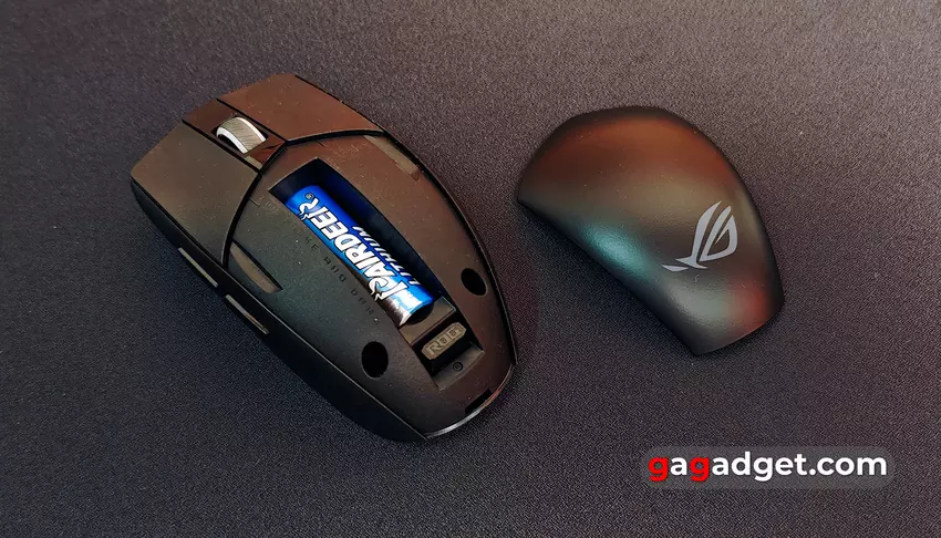 ASUS ROG Strix Impact III Wireless jest kompaktowa i dość lekka: 57 g bez baterii i nadajnika USB. Z baterią AAA i adapterem waży 68 g, a z baterią AA 72 g. Chociaż te liczby są warunkowe, biorąc pod uwagę, że baterie i akumulatory mogą się nieznacznie różnić wagą. Sama mysz jest dobrze wykonana z praktycznych materiałów. Wszystkie części są idealnie dopasowane, nic się nie chwieje ani nie trzęsie.