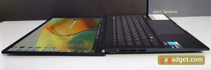 W poprzednich recenzjach wielokrotnie mówiliśmy o programie certyfikacji Intel Evo. Laptop musi spełniać kilka warunków: rozdzielczość wyświetlacza co najmniej FullHD, obsługa szybkiego ładowania, 9 godzin pracy na baterii, obsługa Wi-Fi 6 oraz Thunderbolt 4. Według firmy ASUS, ASUS Zenbook 14 OLED (UX3402) spełnia te warunki. Począwszy od 12. generacji mobilne procesory Intela, oprócz zwykłych U i H/HX, mają nową linię P. Teraz literą P oznaczane są procesory o TDP na poziomie28W, które przeznaczone są do stosowania w kompaktowych, lekkich, ale wystarczająco wydajnych laptopach .Seria U będzie miała teraz TDP na poziomie 9-15W. Są one nastawione wyłącznie na maksymalną mobilność i autonomię. Laptop napędzany jest 12-rdzeniowym procesorem Intel Core i7-1260P, który obejmuje 4 produktywne i 8 energooszczędnych rdzeni, obsługuje 16 wątków Hyper Threading i jest produkowany w technologii Intel 7 process. Bazowa częstotliwość to 2,1 GHz, turbo - do 4,7 GHz, 18 MB pamięci podręcznej, TDP - 28 W. Nie ma tudyskretnej karty graficznej, tylko wbudowany Intel Iris Xe z 96 jednostkami obliczeniowymi, których maksymalna częstotliwość może sięgać 1400 MHz . RAM - 16 GB LPDDR5-4800 jest wlutowane na płycie, nie przewidziano możliwości rozbudowy. Interfejsy bezprzewodowe: Wi-Fi 6E (802.11ax) i Bluetooth 5.0.