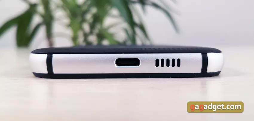 Na dole - siatka głośników zewnętrznych, mikrofon i złącze USB typu C.