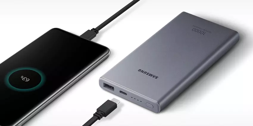 Producenci smartfonów często opracowują własne technologie szybkiego ładowania, co warto wziąć pod uwagę przy wyborze przenośnej baterii. Samsung postanowił ułatwić to użytkownikom i wypuścił na rynek markowe akcesorium w postaci metalowego paska, który obsługuje Power Delivery 3 i Super Fast Charge. Po naładowaniu przez USB Type-C, powerbank dostarcza do 25W mocy - dokładnie tyle, ile potrzeba flagowcom producenta. Maksymalne wartości są osiągane, gdy tylko ten port jest zajęty. Drugie wyjście USB umożliwia natomiast ładowanie urządzeń z Quick Charge 2.0 (do 18W). Pojemność baterii wynosi 10 000 mAh, a aktualny poziom naładowania jest wskazywany przez prosty wskaźnik LED.