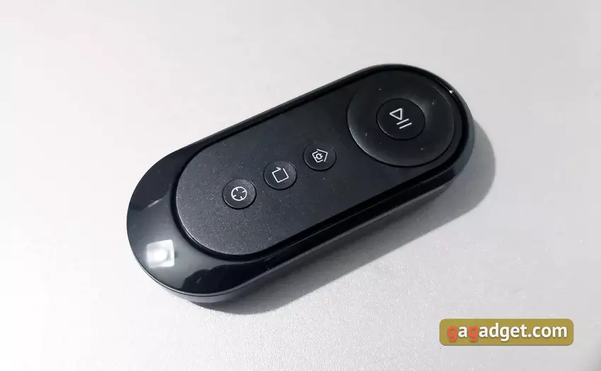 Kompletny pilot jest niewielki i ma kilka przycisków. Tryby start / pauza, tryb punktowy i czyszczenia wzdłuż ścian, powrót do stacji dokującej i przyciski kierunków w celu ręcznego sterowania robotem.